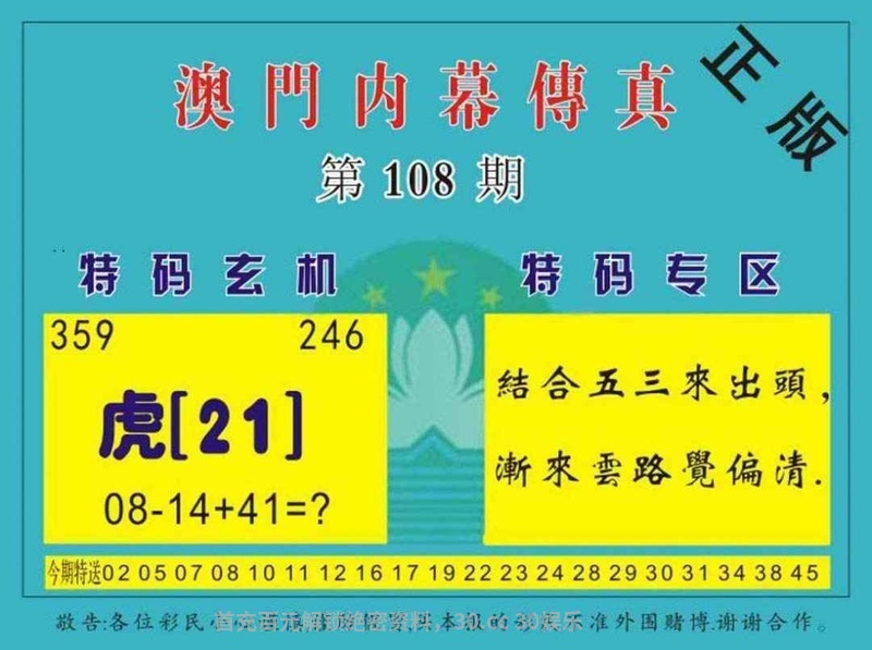 110期:【奇人论坛★三尾六码★中特好料】